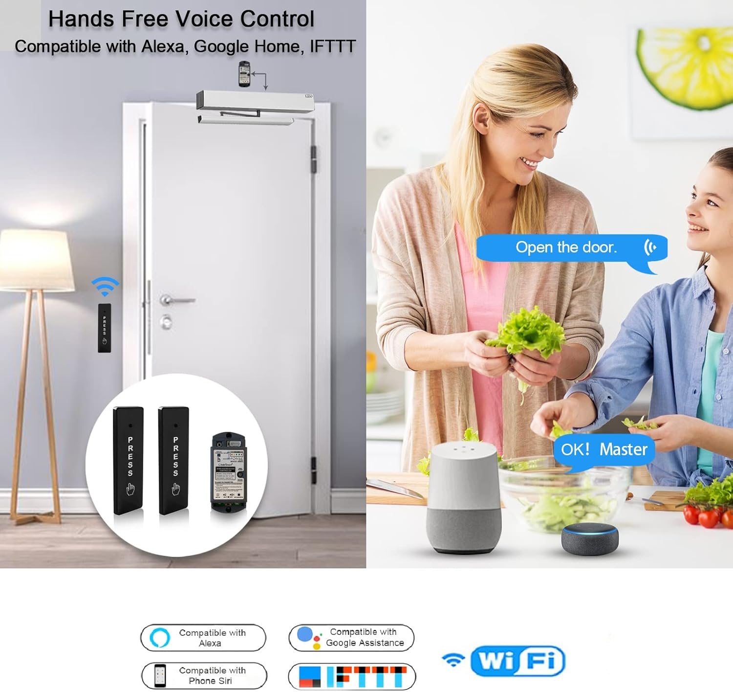 Olideauto Smart WiFi APP Control Automatic Door Opener,WiFi Built in Receiver Olide-510FW,Compatible for Alexa,Google Assistant Voice Control Auto Door with Wireless Push Panels