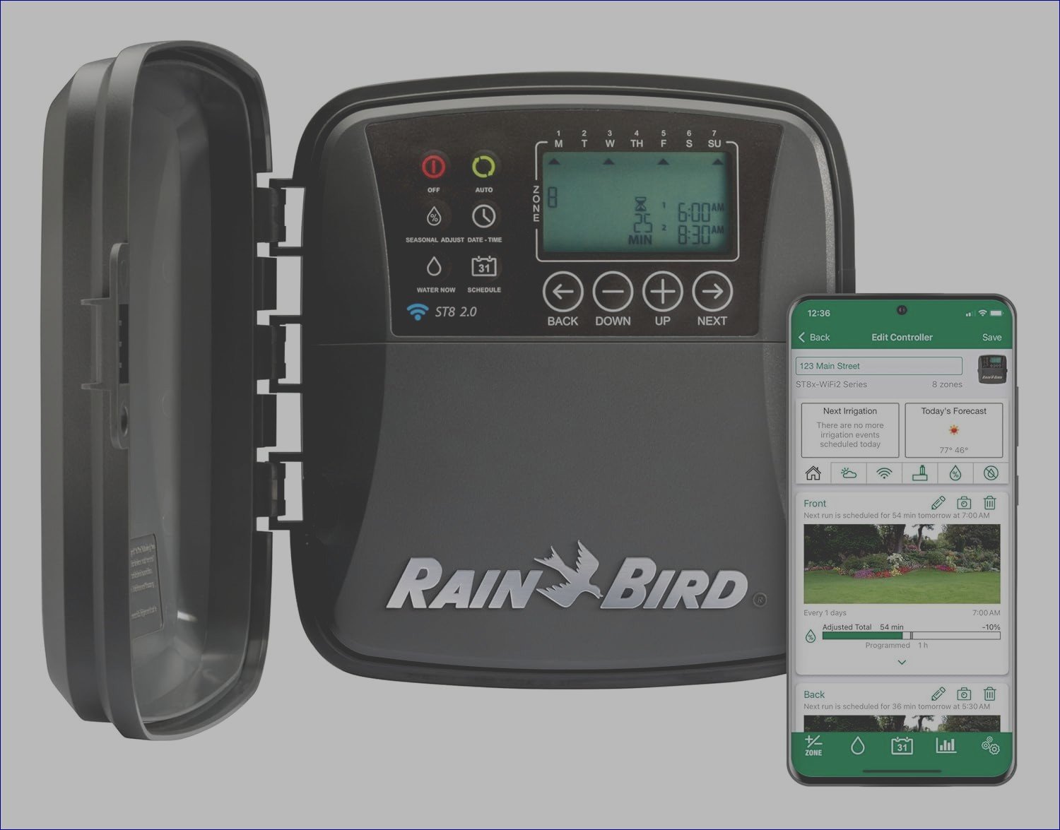 Rain Bird ST8O-2.0 Smart Indoor/Outdoor WiFi Sprinkler/Irrigation System Timer/Controller, WaterSense Certified, 8-Zone/Station, Compatible with Amazon Alexa, Grey/Black