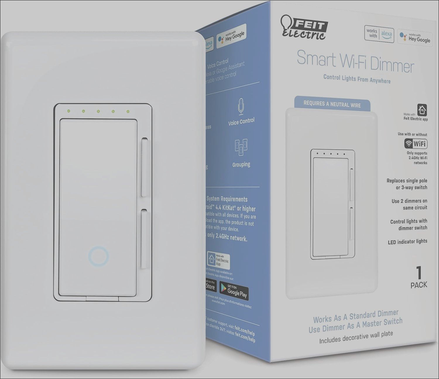 Feit Electric Smart Dimmer Switch, Neutral Wire Required for Installation, Compatible with Amazon Alexa and Google Assistant, Smart Dimmer Light Switch, White, Model:DIM/WiFi