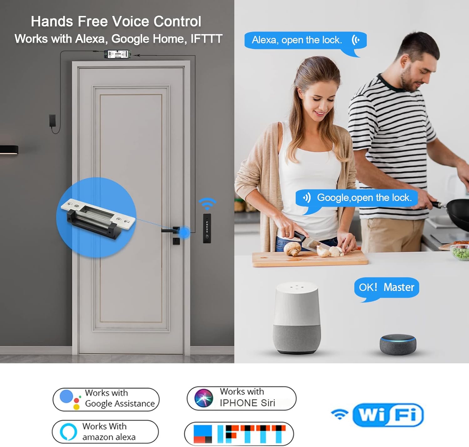 2.4GHz WiFi Access Control 400lb Holding Force Electic Magnetic Door Lock System Kit with Remote and Smartphone app Control, paired with Wireless Slim Push Switch (Electric Strike Lock kit)