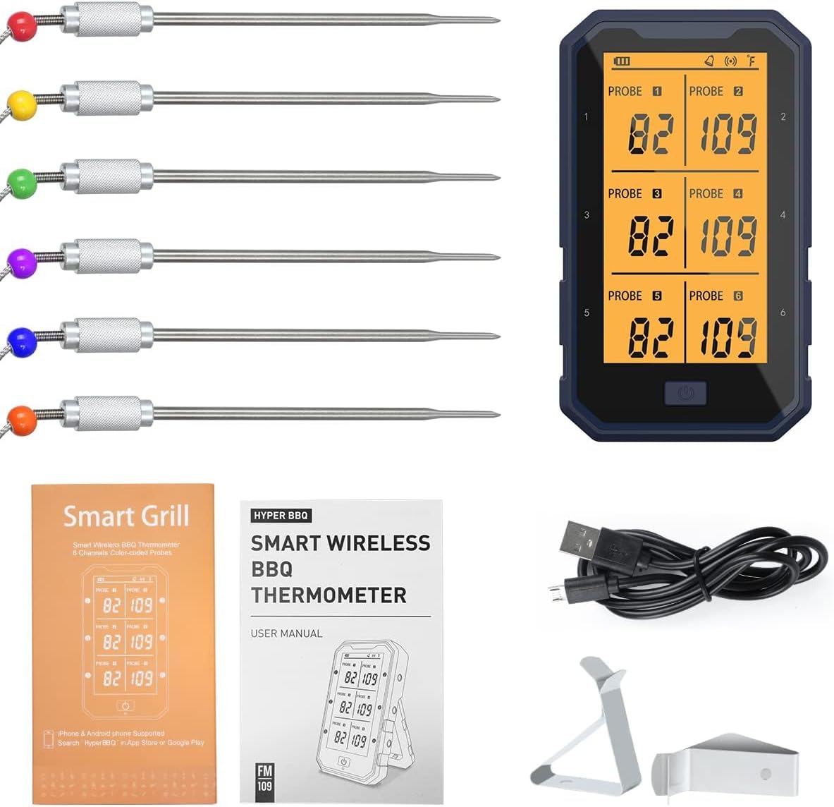- Probes: 6 stainless steel with Teflon cable (3.7 ft)