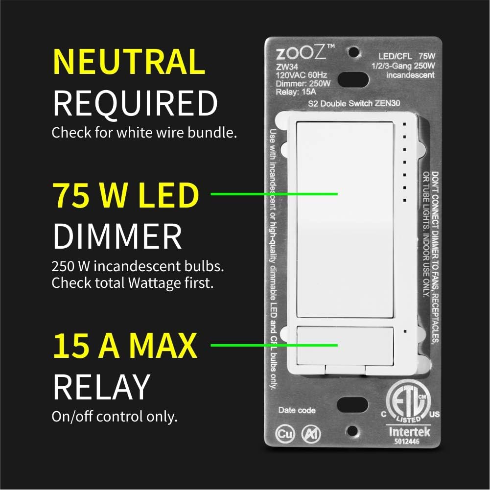 Zooz Z-Wave Plus S2 Double Switch (White) ZEN30 for Fan and Light Combo (NO Speed Control), Signal Repeater, Hub Required (Works with Hubitat, Wink, SmartThings, Vera)